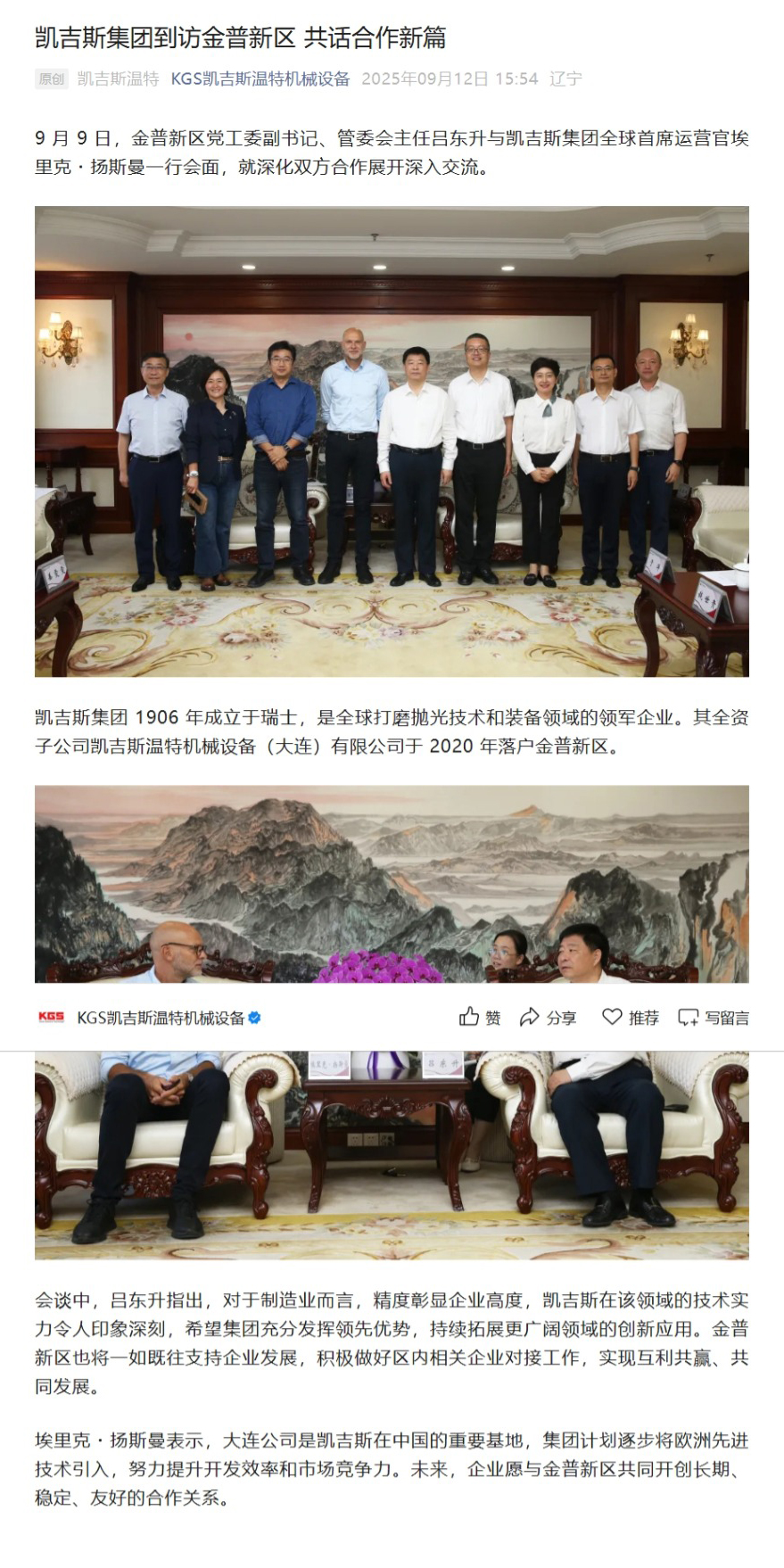 凯吉斯集团到访金普新区 共话合作新篇